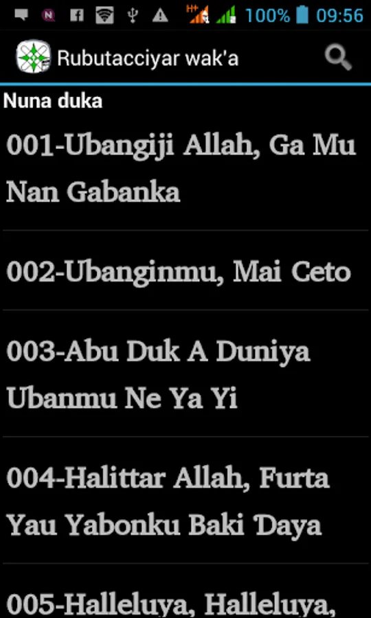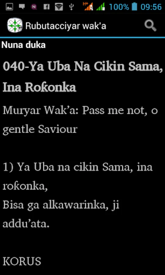 qui sont recueil de leur livre de cantiques « Littafin Wakoki ». Aussi, l'app a d'autres chansons, chœurs et