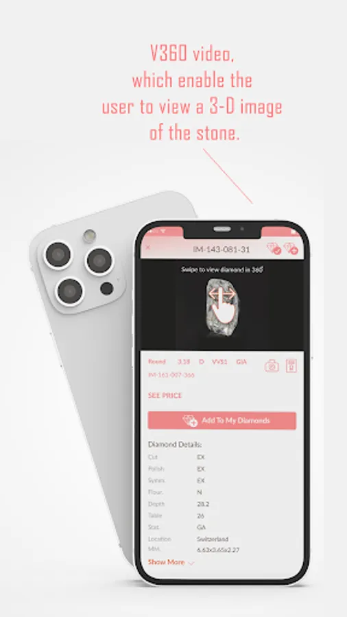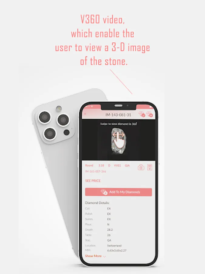 This improved app also enables you to view V360 lab grown diamond photography and certificates.