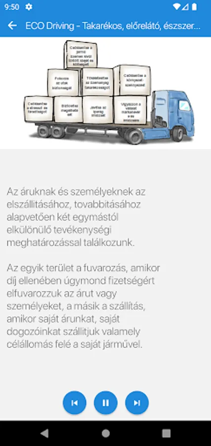 The EcoDrive application is an educational program that helps drivers to drive their trucks in a fuel-efficient way and to protect their vehicles.