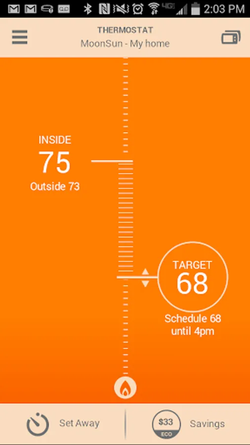 EcoFactor makes small adjustments to your scheduled thermostat based on your heating and cooling patterns in your home and outside weather conditions. The dotted circle icon appears when energy savings is activated.