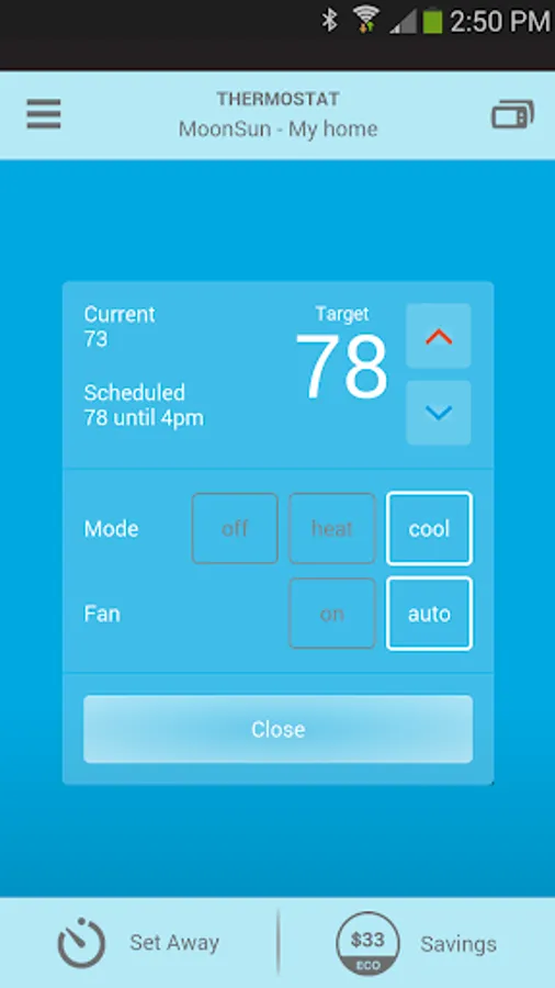 Use ‘Set Away’ when you’re on vacation or just away from home outside of your normal schedule. This saves even more energy.