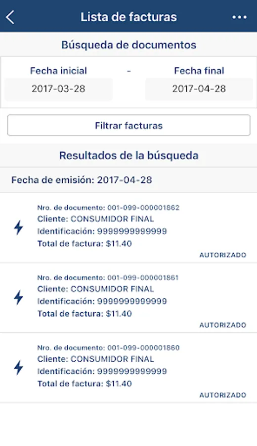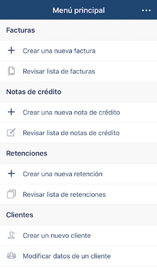 It offers greater reliability in transactions and confidentiality is guaranteed. View your invoices, credit notes and retentions per customer, per date of issue or by status (existing or canceled).