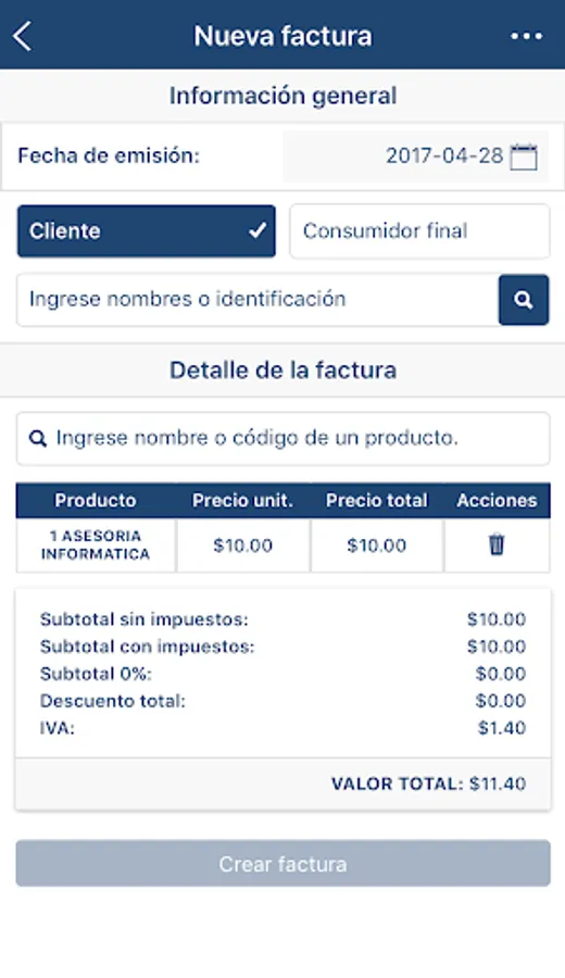 RAPIFAC users can issue invoices, credit notes or electronic deductions from your smartphone, tablet or computer, allowing access to a database with more than 4 million records of natural or legal persons. Your customers will immediately receive electronic documents in their emails or be downloaded from this site.