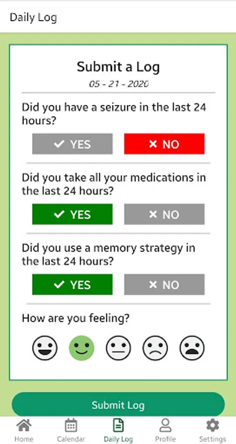 A health app for logging patients with epilepsy's conditions, including various other wellness tools.