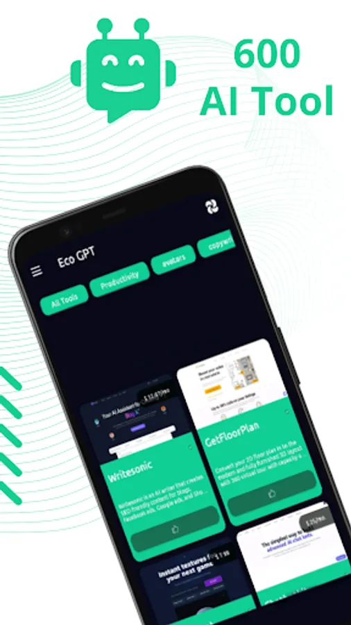 EcoGPT AI : chat + 600 other AI tools free is an app that provide the simplest and fatest way technology , to answer any question in your mind , using advanced chat AI GPT 4 .