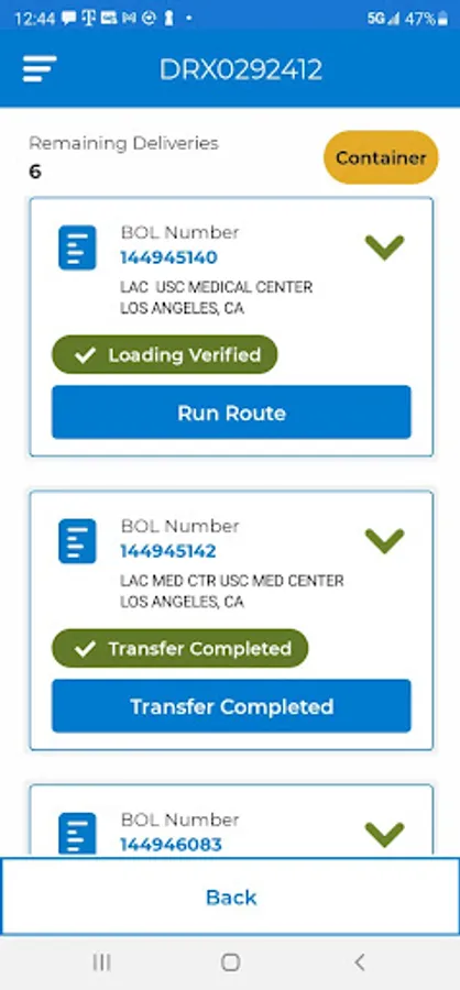 · confirms when you're at the correct tank / dropoff location