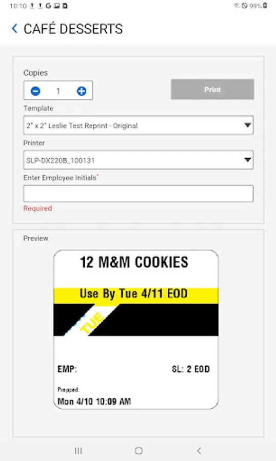 • Reprinting previously printed labels to preserve the original “prep” time and calculated “use by” information.