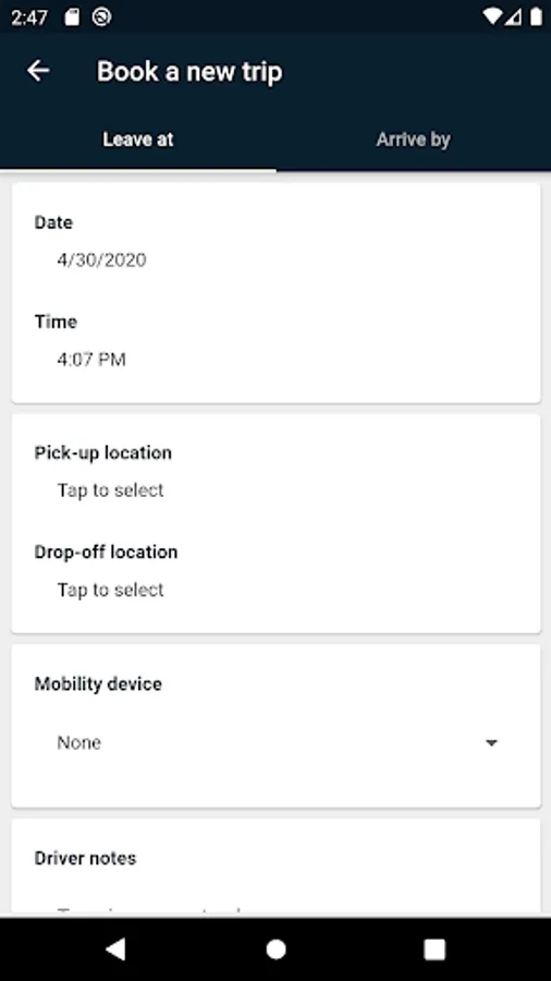 NOTE: Access to some features will depend on the service guidelines for your individual transportation agency.