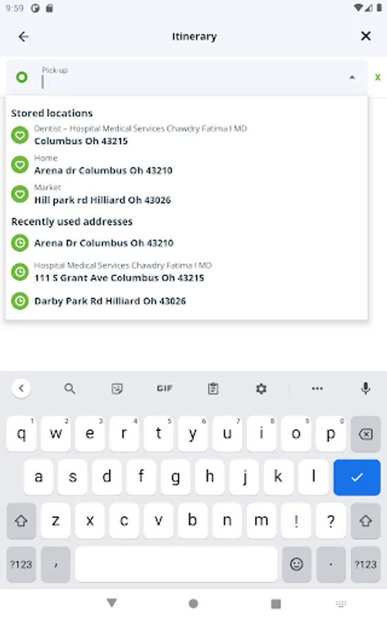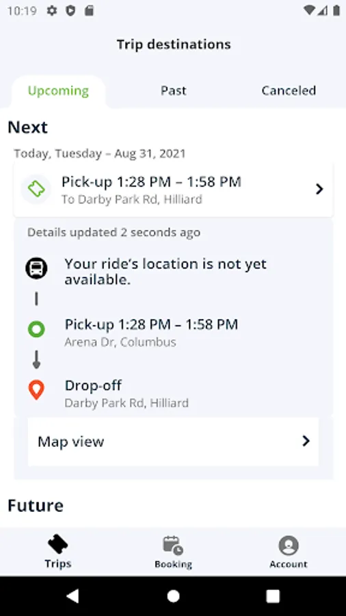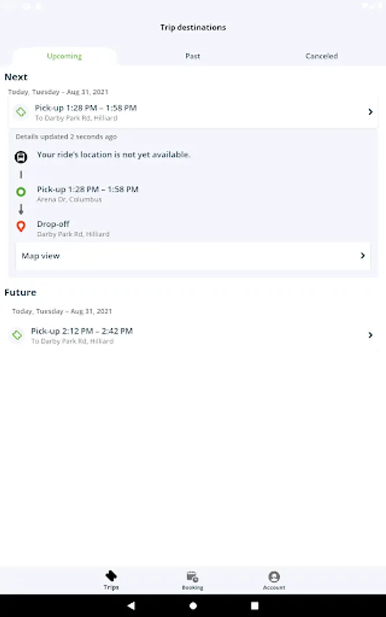 - View upcoming and completed trips, easily cancel trips