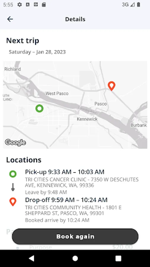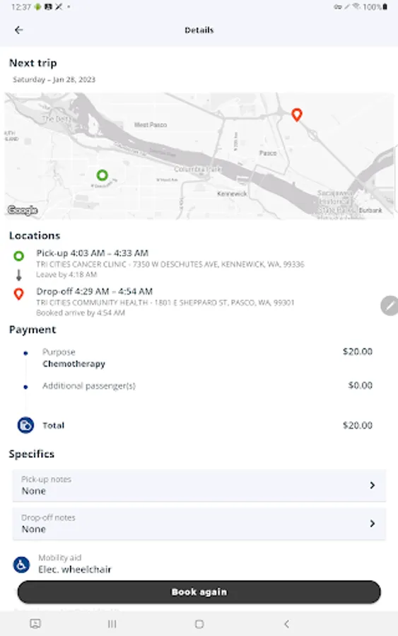Flexible trip management, convenient trip details, and simple to use. Book same day service, two-weeks prior to requested appointment, day before, and re-occurring appointments.