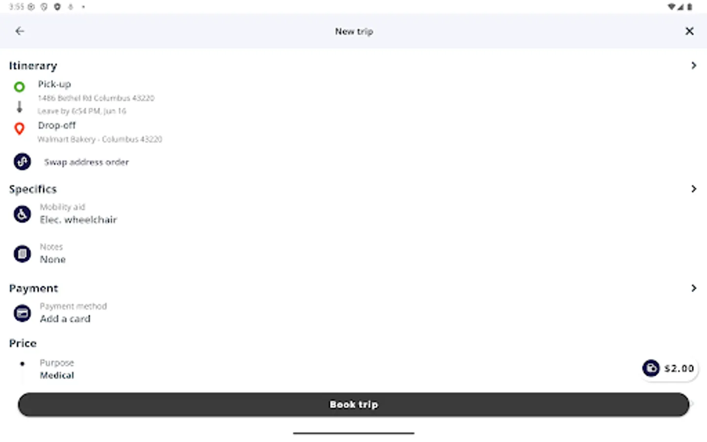 NOTE: Access to some features will depend on the service guidelines for your individual transportation agency.