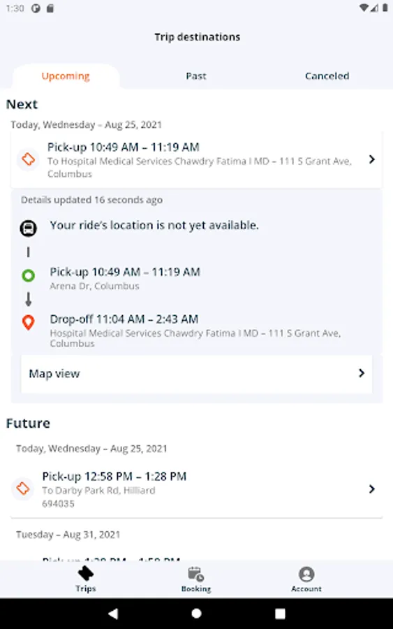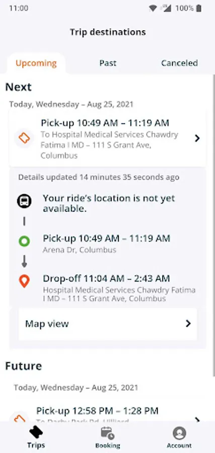 View upcoming and completed trips