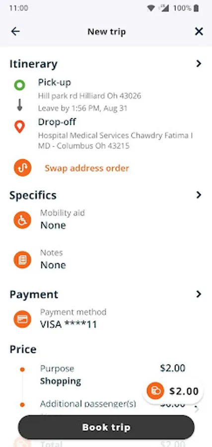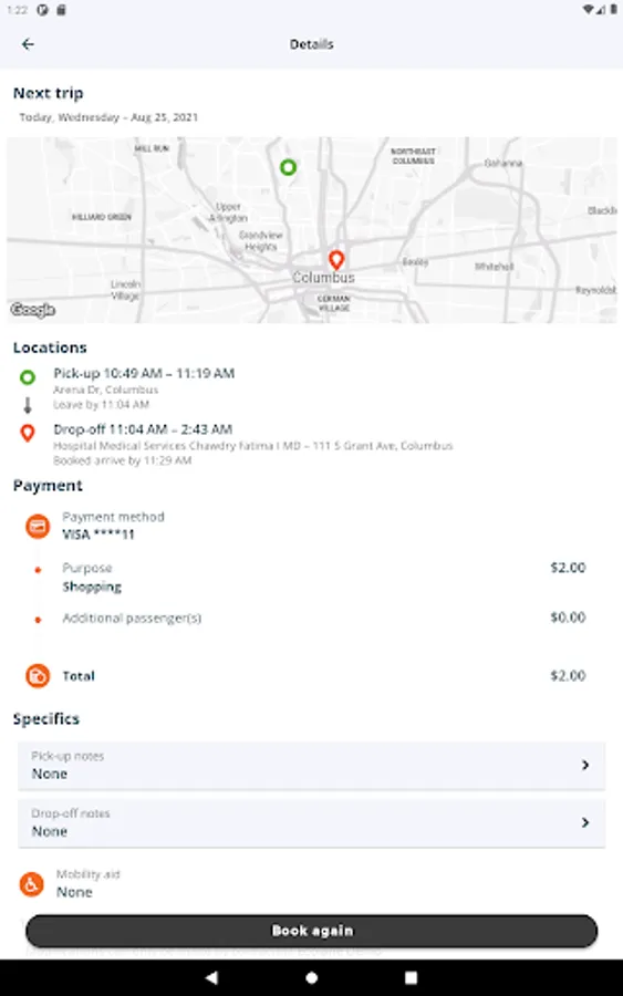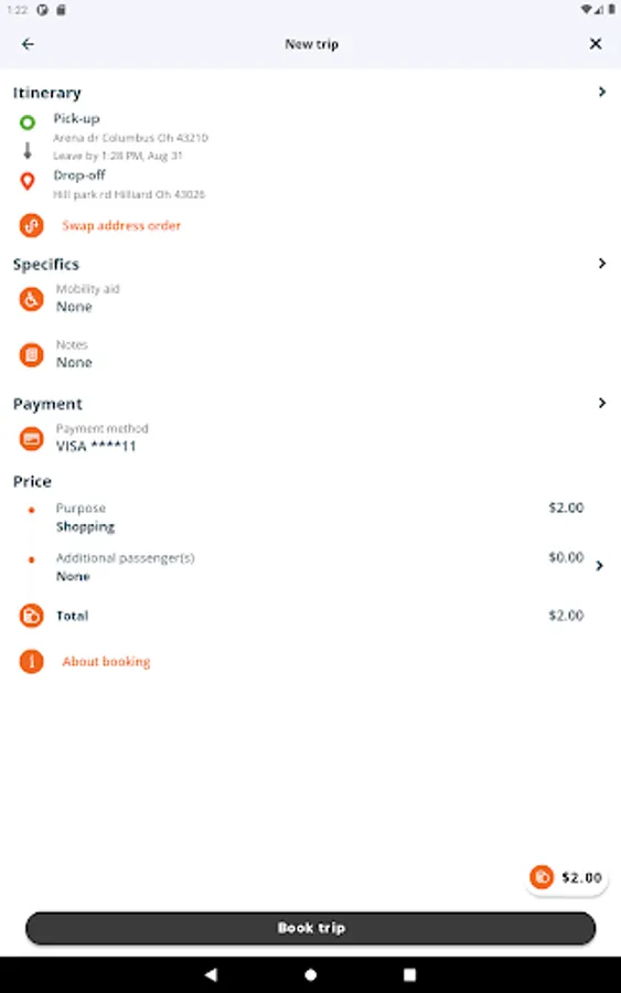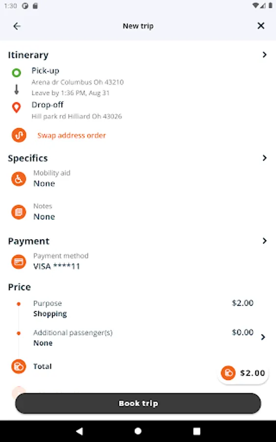 Convenient trip details view