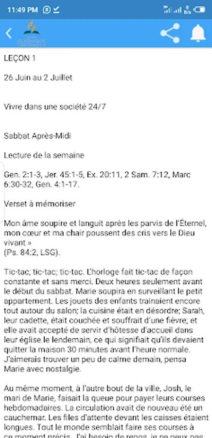 est un lieu de partage, où se réunissent des personnes qui aiment méditer la Bible, communiquer leur vécu avec Dieu et échanger avec d’autres leurs impressions tirées de leur étude de la Bible. Accompagnés de musique, cantiques et prières, les moments de partage ont lieu pendant une heure, avant le culte hebdomadaire.
