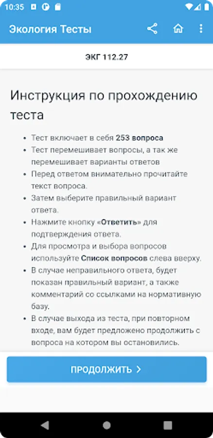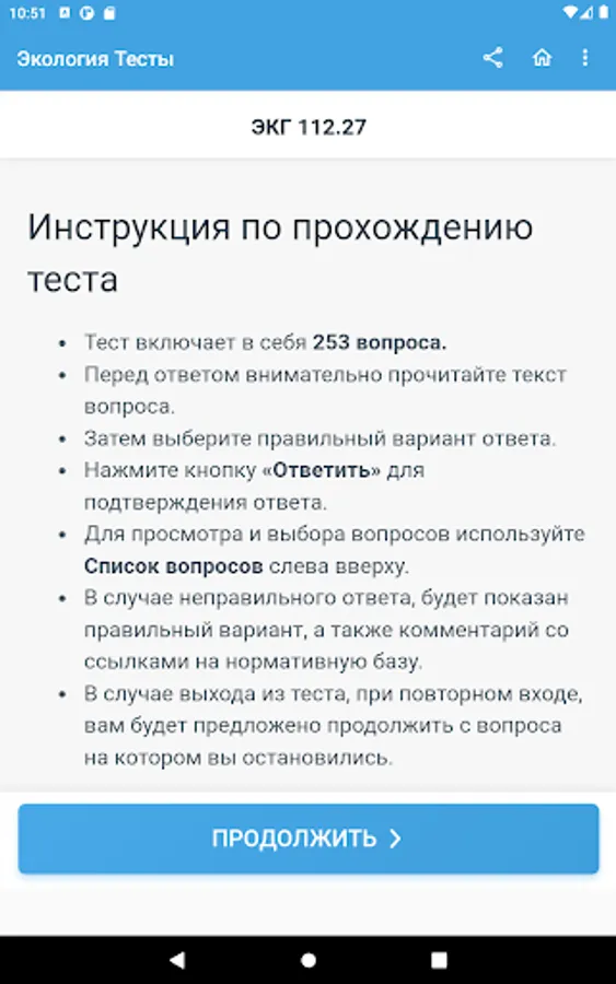 The environmental safety ECG test is represented by question and answer tickets. For education and preparation, before passing the exam, you need to study the regulatory and technical documentation of the corresponding exam and solve the tests. All tests, tickets, questions, answers and the possibility of preparing for the exam on our resource are absolutely free!