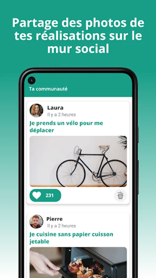 A community committed to the environment comes together on the social wall to share photos of their everyday eco-gestures. Actively participate in the community and double your points for each photo shared.