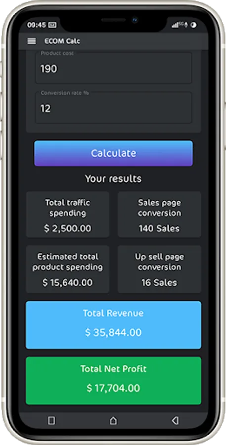 ECOM Calc (E-Commerce Business Calculator) is a Must Have app for Any eCommerce specialist responsible for the design and execution of an eCommerce marketing strategy to promote the products and services of online businesses using all available marketing channels.