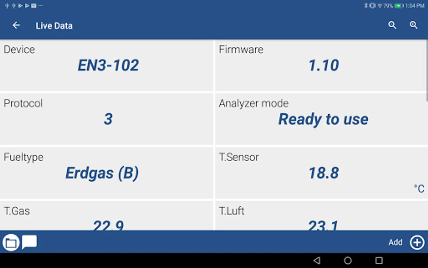 Prerequisite for the use of the app is an ecom flue gas analyzer with BLE or WiFi function.