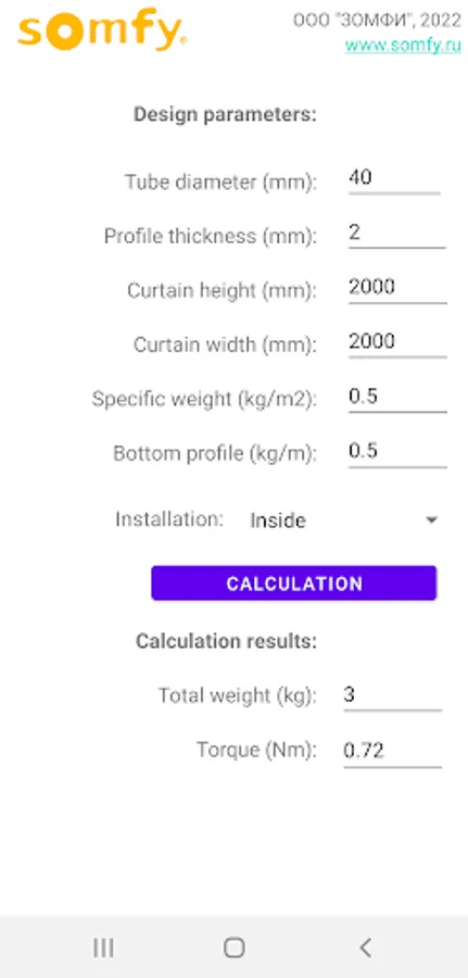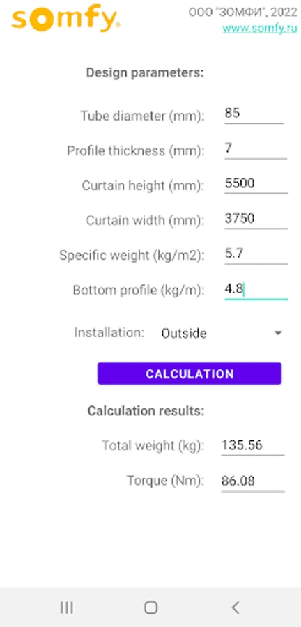 This program is intended for the appropriate motor selection and other roller shutter parameters. The user can set the following parameters: