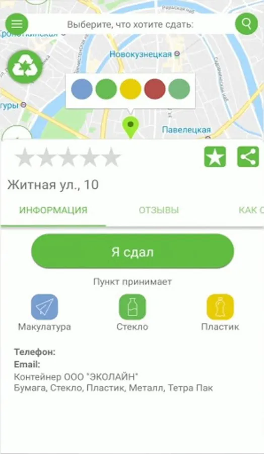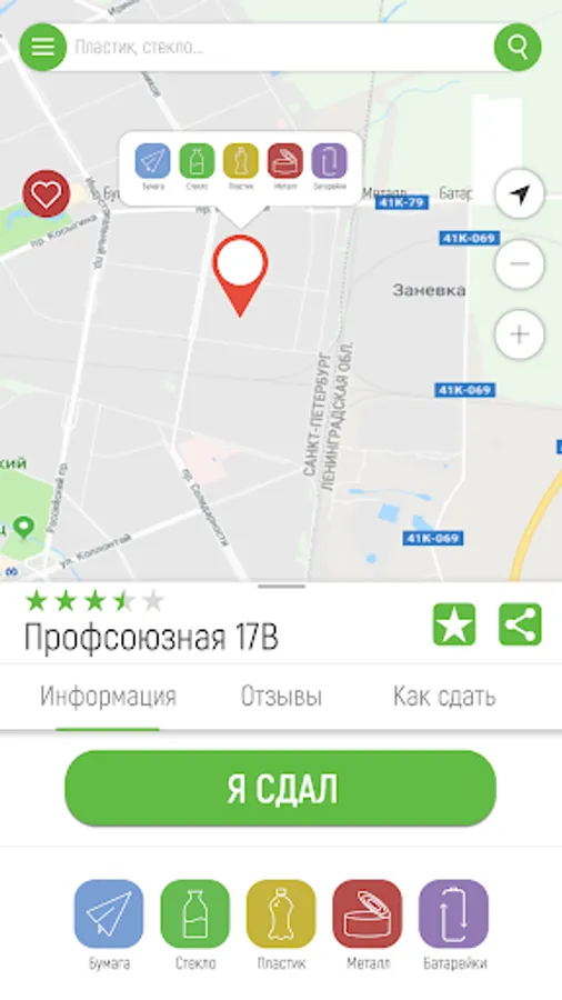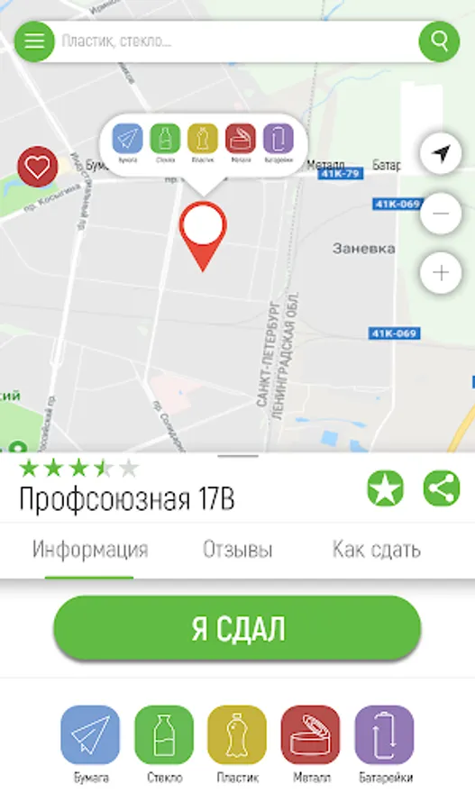 Ecomap helps you quickly and easily find the spot of separate collection of waste deposition in Moscow. The application covers more than 3000 spots, and also provides information about clothes you can donate for charity. There are also many filters on the map to accurately determine the needed spot.