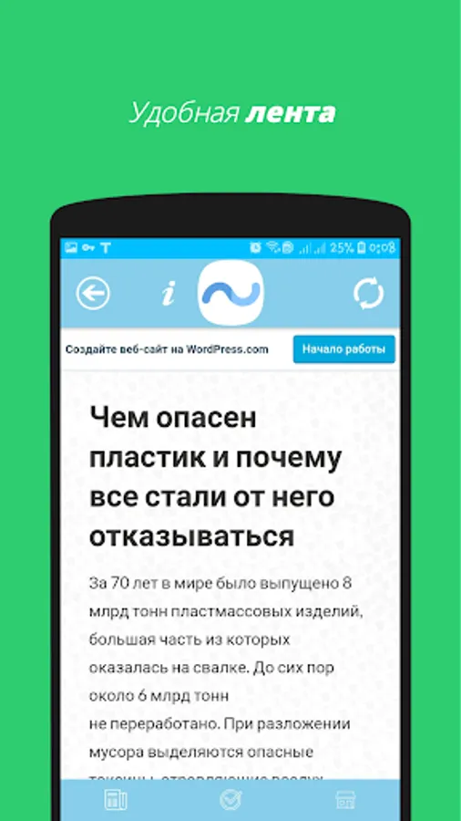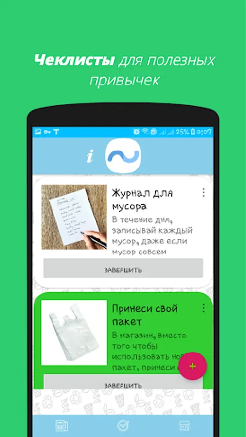 Ecomek helps to understand the basics of green life. Useful checklists for mastering good habits. Constantly updated feed with new and useful information. Ekomagazin built into the application. The application provides information about the points of reception of plastic and other waste. This allows for environmentally friendly disposal of the maximum amount of waste, as well as giving a second life to things and household items.