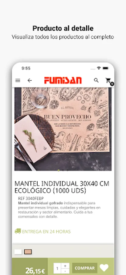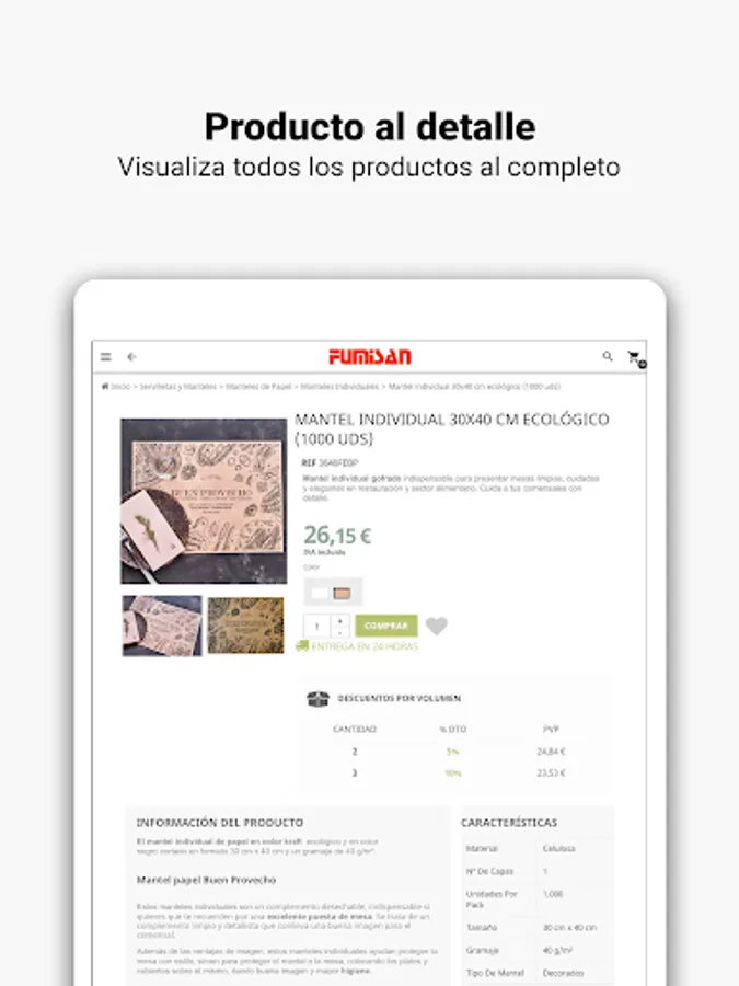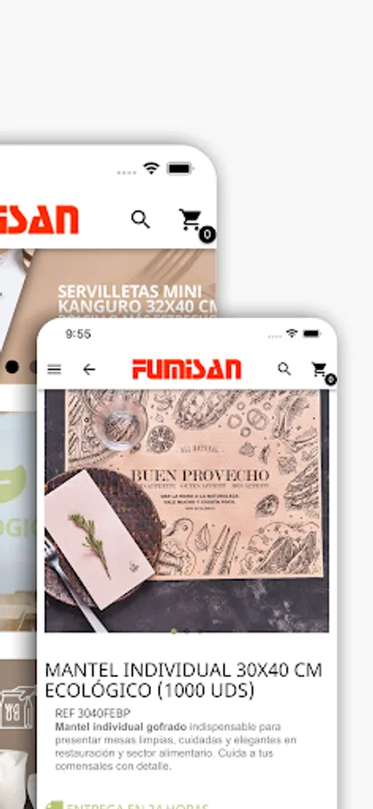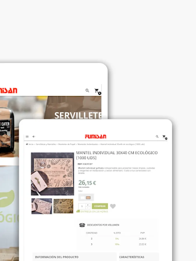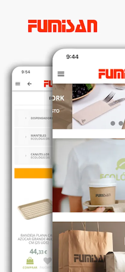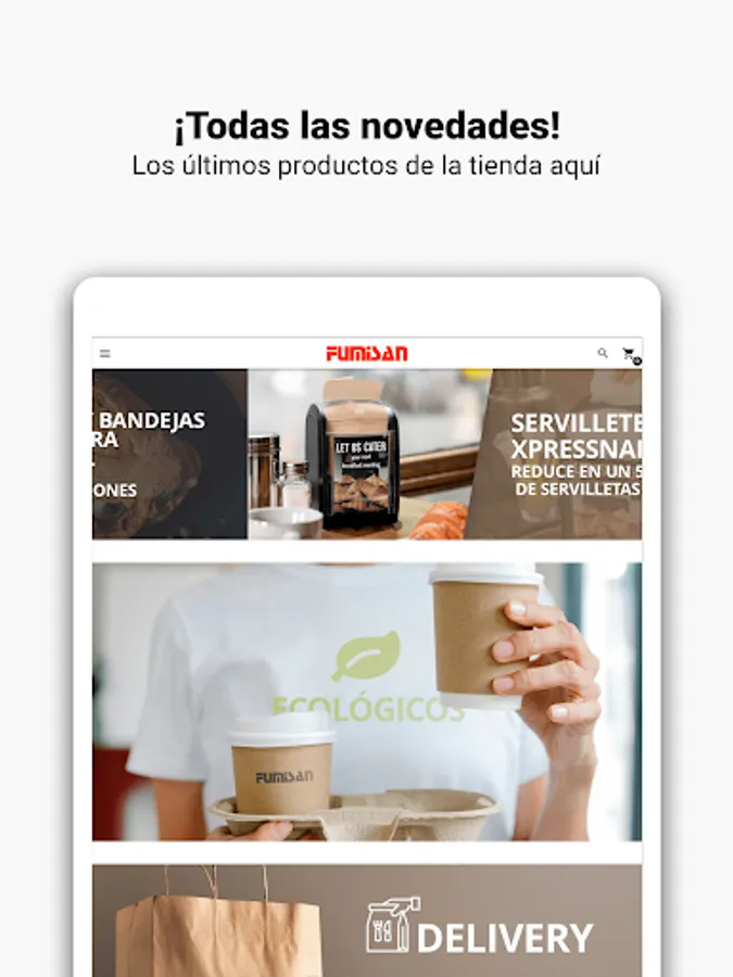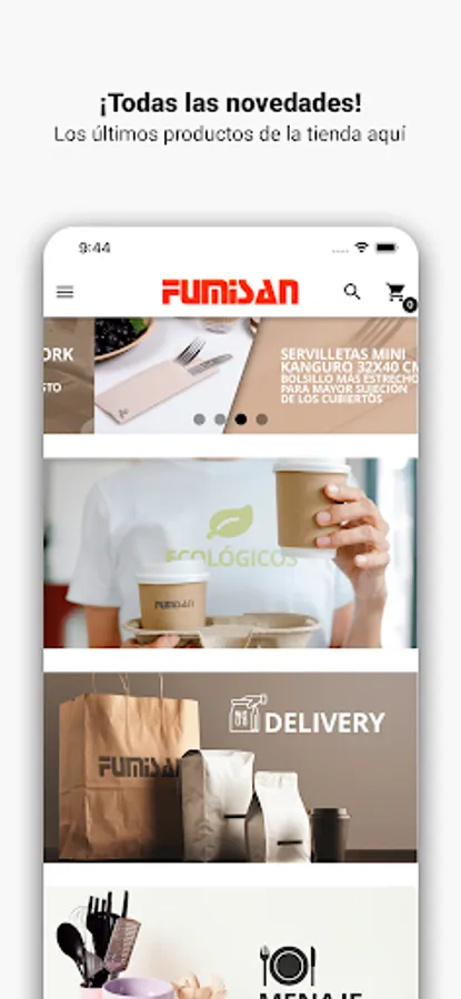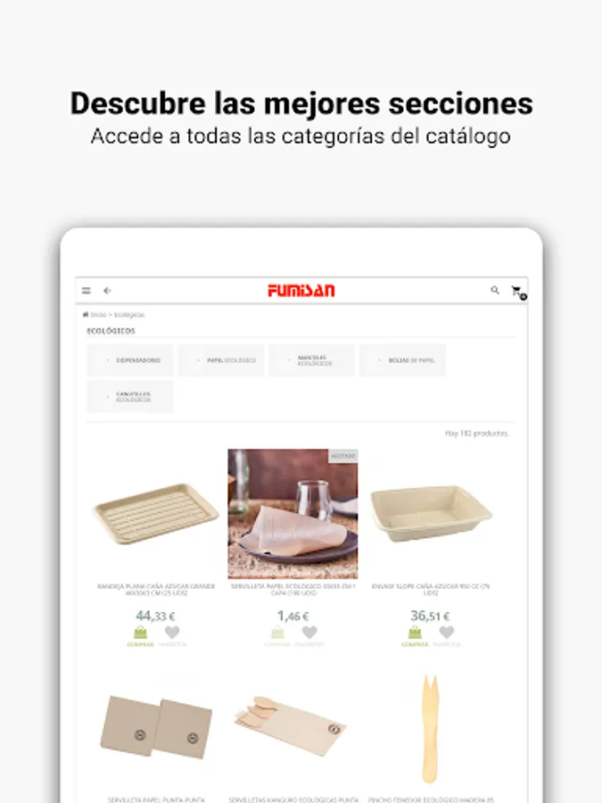 Choosing the packaging and cleaning products for your business has never been so easy. With the Fumisan application you can select everything you need for your business from the comfort of your mobile device. We are specialized in the hospitality sector and in our catalog you can find all kinds of ecological packaging, disposable kitchenware and cleaning:
