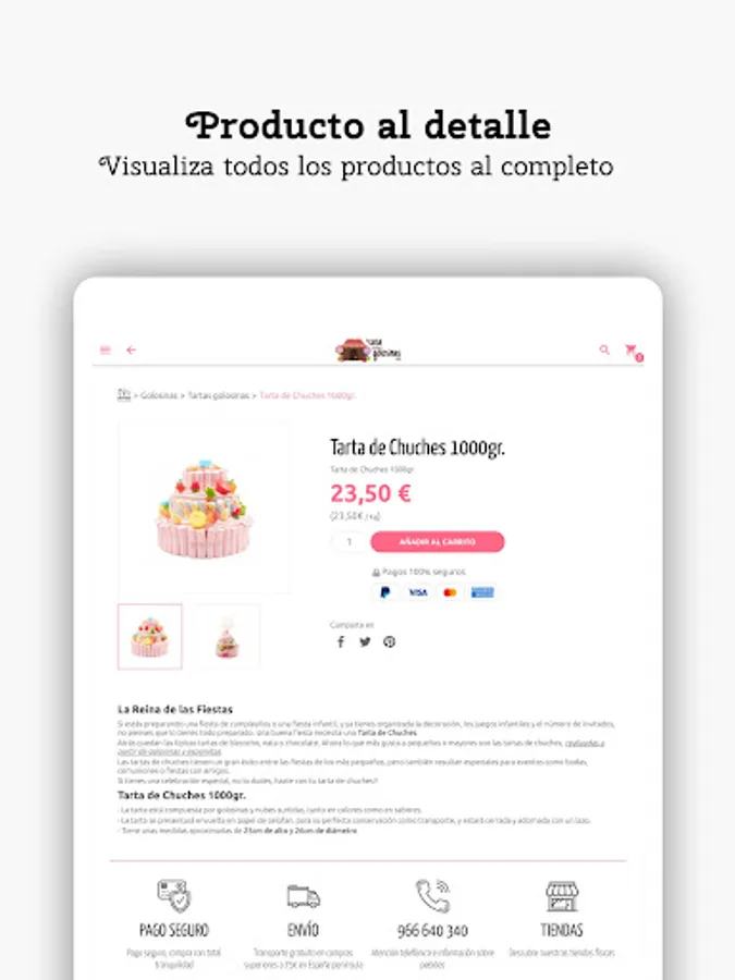 If you are a fan of sweets and chocolates, you can have your favorite sweets and chocolates with just one click from our mobile or tablet application. You can receive your order in 24 or 48 hours in national shipments.