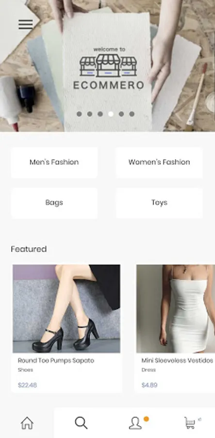 Ecommero is e-commerce app built using react native, expo, react navigation for ios & android. The ideal starter kit / app script with all the needed UI elements to build your ios and android e-commerce app like eBay / amazon / alibaba / flippa.