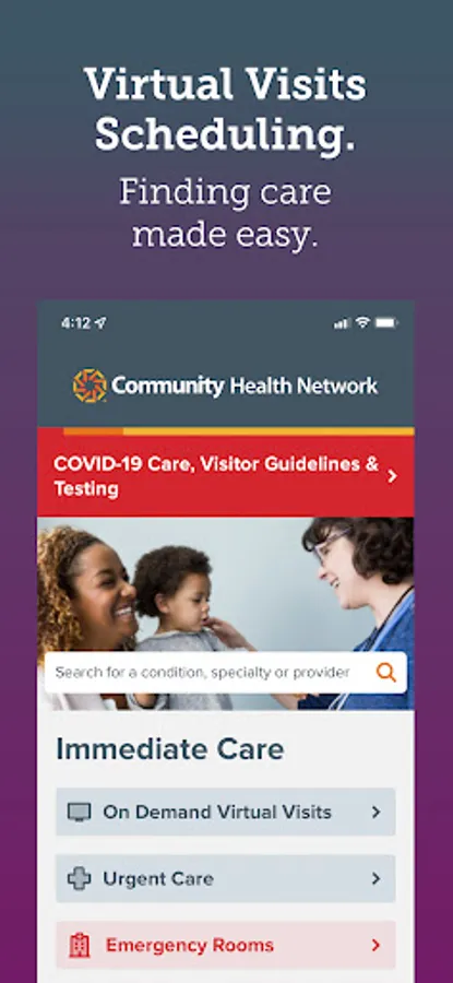 With Community Health Network app you can check your medical record, schedule an appointment, pay your bill, or complete a virtual doctor visit on any mobile device. The app even provides directions, visitor information, and makes it easy to find a physician.