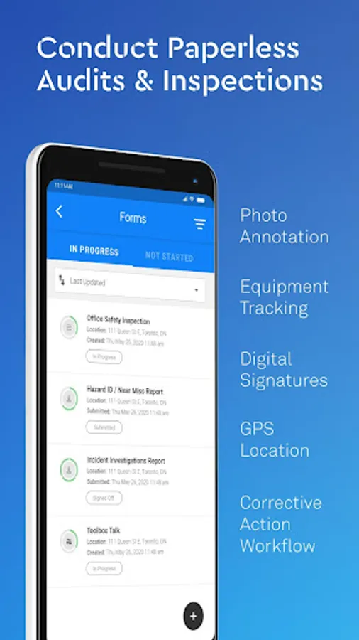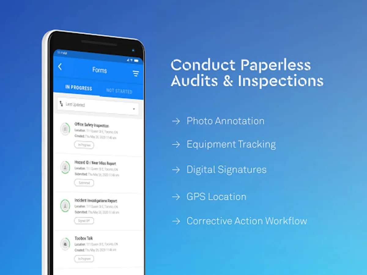 Paperless Forms – All inspections, audits, incident and near miss reports can be completed on the eCompliance Mobile and then immediately submitted for sign off. All forms can include geographical location, important notes and photos which can be annotated.