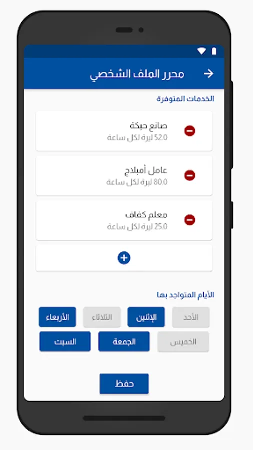 - Adding the services that you provide / need with the ability to specify the price on each piece or per hour.