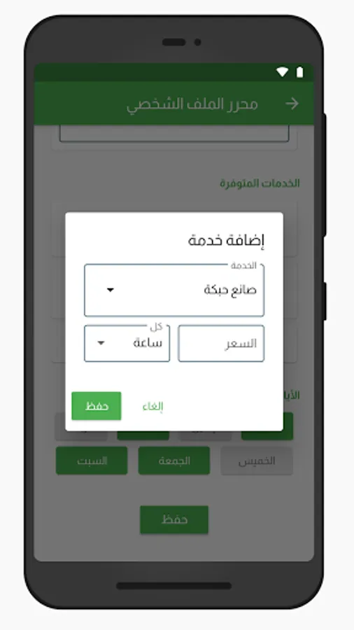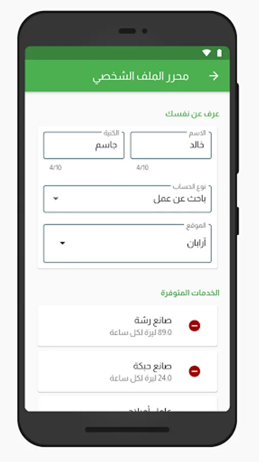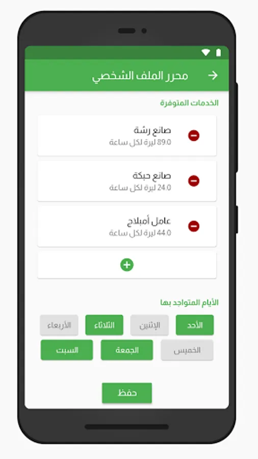 - Adding the services that you provide / need with the ability to specify the price on each piece or per hour.