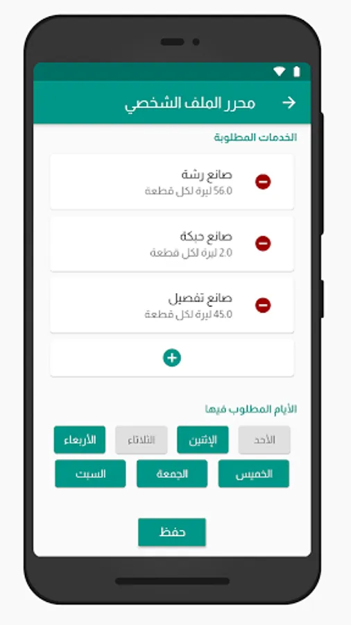- Adding the services that you provide / need with the ability to specify the price on each piece or per hour.