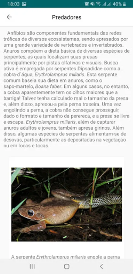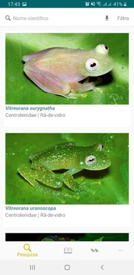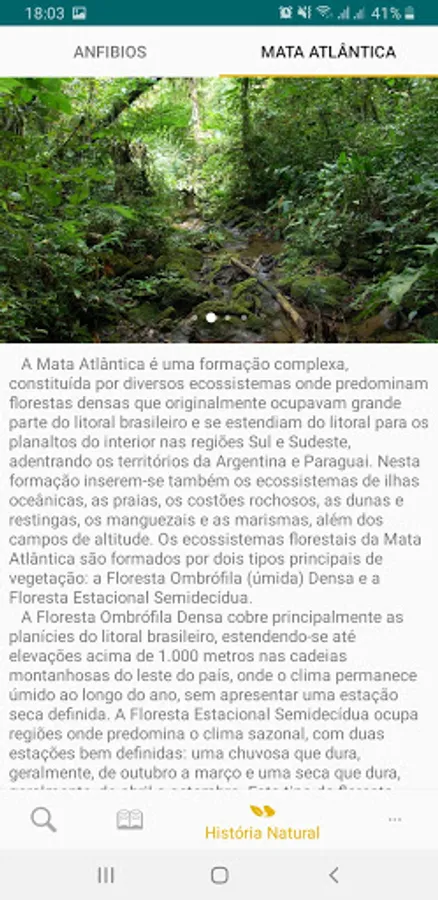 This Portuguese / English bilingual app is the most comprehensive guide to the amphibians of the Atlantic Forest, a biome considered as a biodiversity hotspot. The application provides information on food, predators, defense, reproduction, tadpoles, vocalization and conservation of species. 567 species are presented, which correspond to almost 90% of the total amphibian diversity of this biome.