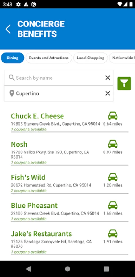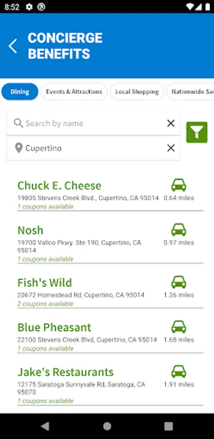 • Easily find great savings and discounts from businesses near your current location, including map and directions