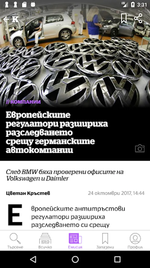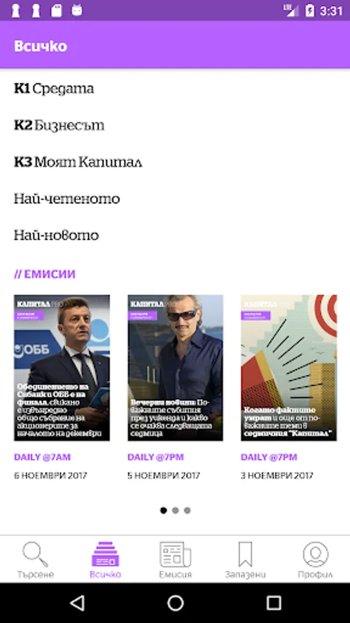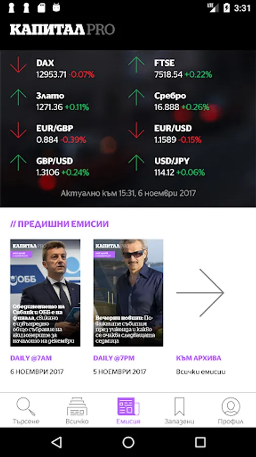 Всекидневна бизнес информация под формата на емисии. Емисиите се обновяват в началото и в края на работния ден, еднократно през уикенда, както и при извънредни събития.