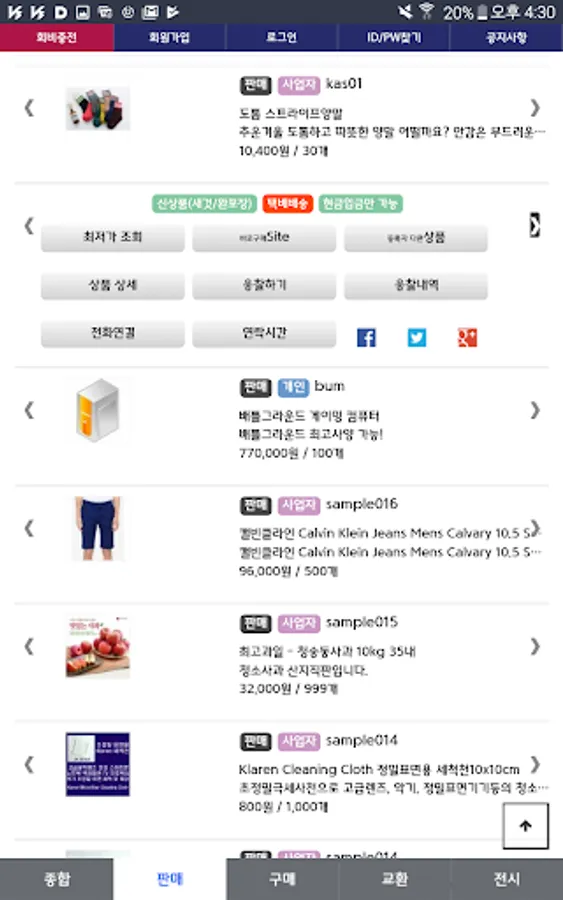1. 본 앱의 이용자: 각종 사업자(판매유통업체/도소매상/음식료 숙박업자/의료서비스/기타 각종 유무형재화를 취급하는 업체 전부)와 자신의 물품이나 용역을 판매나 구매, 혹은 교환이나 광고(전시나 홍보)를 하고자 하는 개인