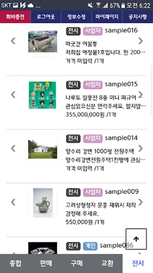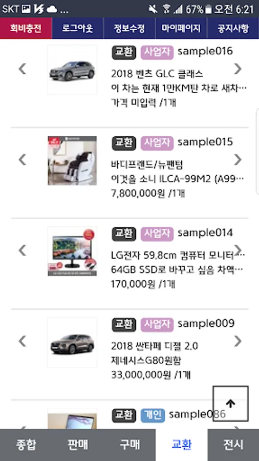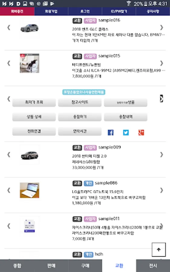 3) 교환정보의 등록,교환응찰,직거래,가격비교기능 등