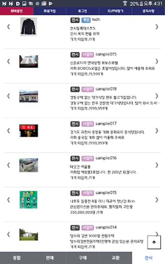 4) 전시(홍보/광고)정보의 등록,평가,직거래 등