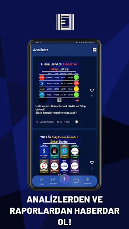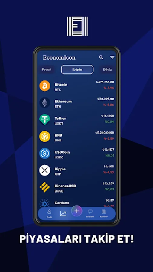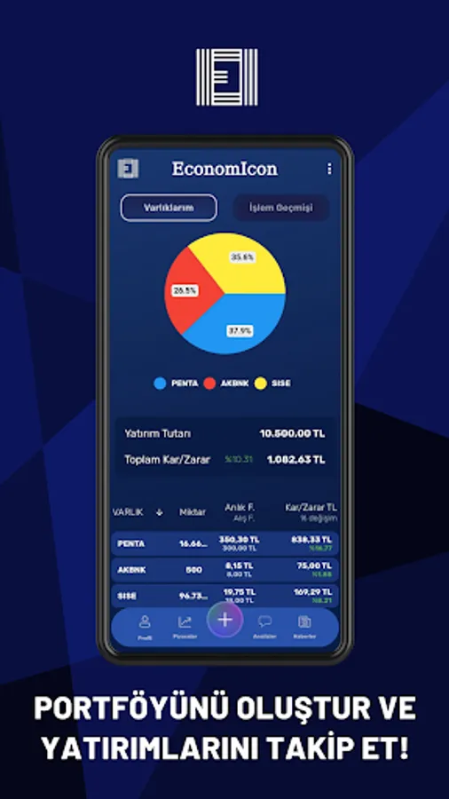 Create your portfolio now and track your investments freely! You can add the investment instrument you want to your portfolio and track your transactions. Unlike other portfolios, you can add stocks you own in the EconomIcon portfolio to your portfolio, while adding crypto money, gold and foreign currency assets to your portfolio, you can see all your assets on a single screen and follow the profit / loss status of these assets individually and in total.
