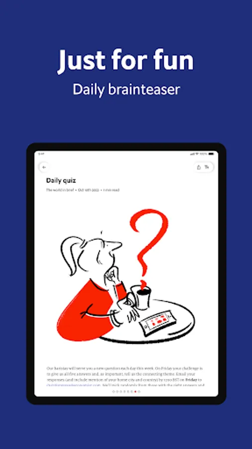 Espresso is well-balanced to complement your lifestyle. You can listen to the audio versions of articles or stretch your mind with enjoyable extras such as facts, charts and a daily quiz.