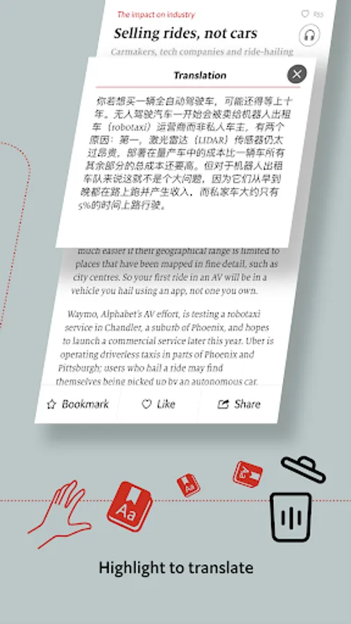 •Press to see the translation for an individual paragraph
