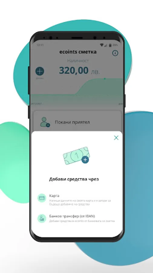 Можете да добавите пари в ecoints от своята карта или банкова сметка.
