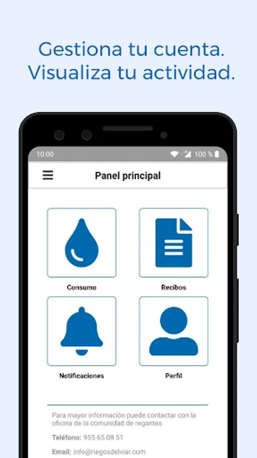 Check consumption, alerts, receipts from the Irrigation Community of the Viar Irrigation Area.