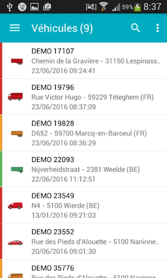 - Module fleet of vehicles: Check the status of a vehicle list, group, and view vehicle details