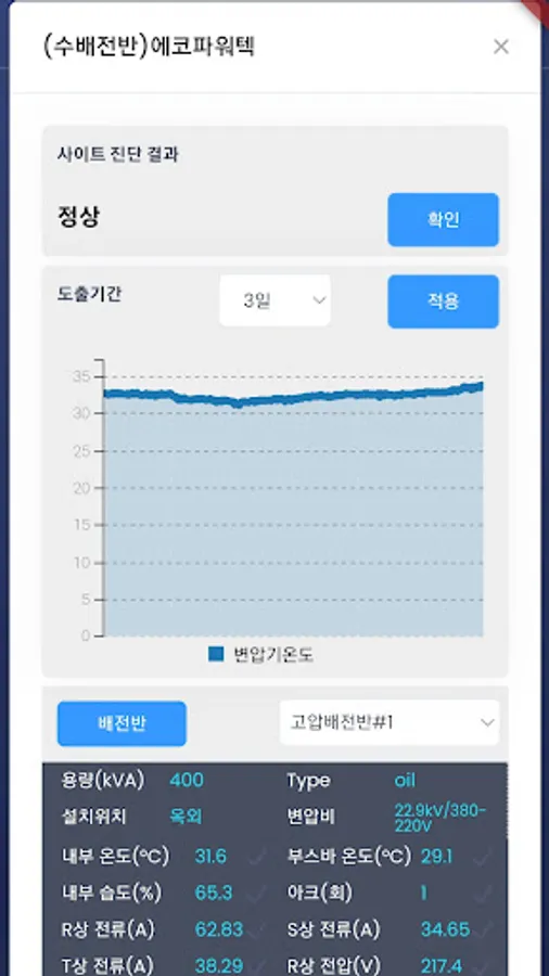 The data acquisition device installed in the switchboard provides the information collected from the relay and sensor module in the form of a GUI to the user through IoT network-based communication, and provides fault diagnosis, failure prediction, and aging diagnosis through trend analysis of the temperature change of the transformer in the switchboard. Monitoring software.