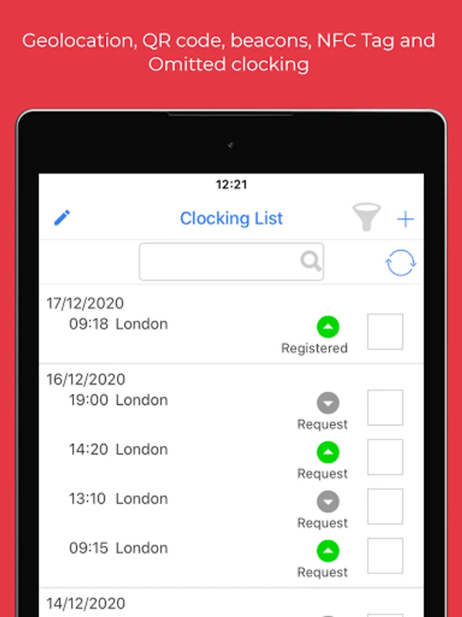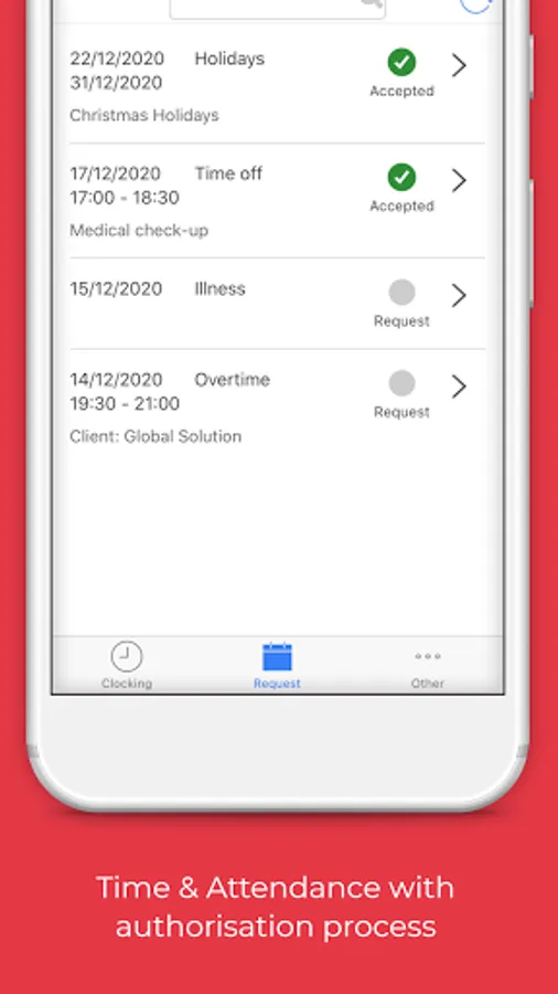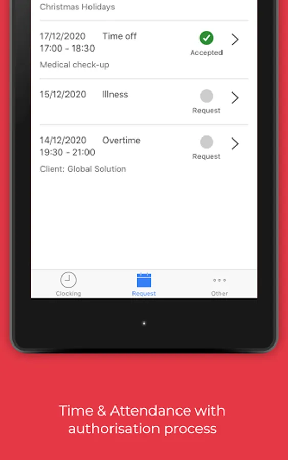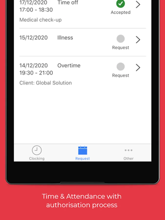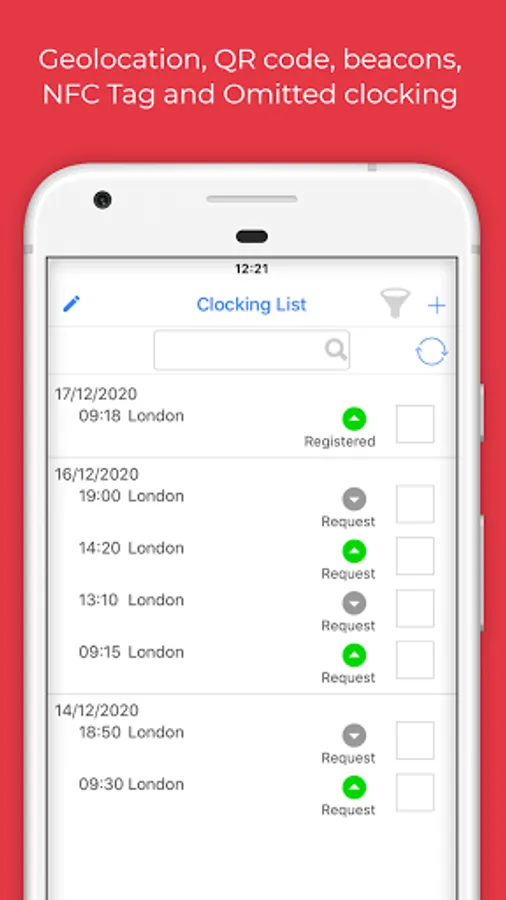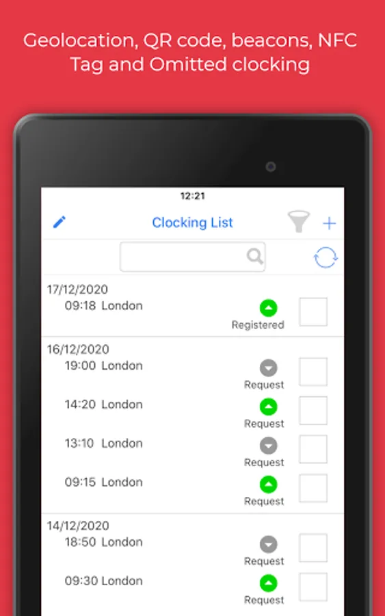 1) Clocking registration: Virtual clocking machine which overcomes the need of traditional devices and is characterised by significantly lower costs and advanced management;