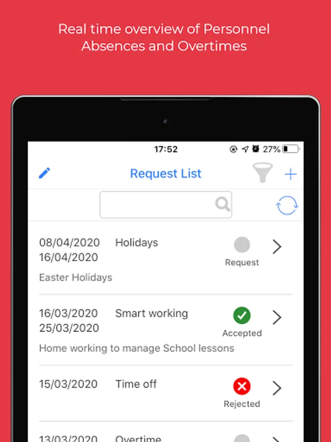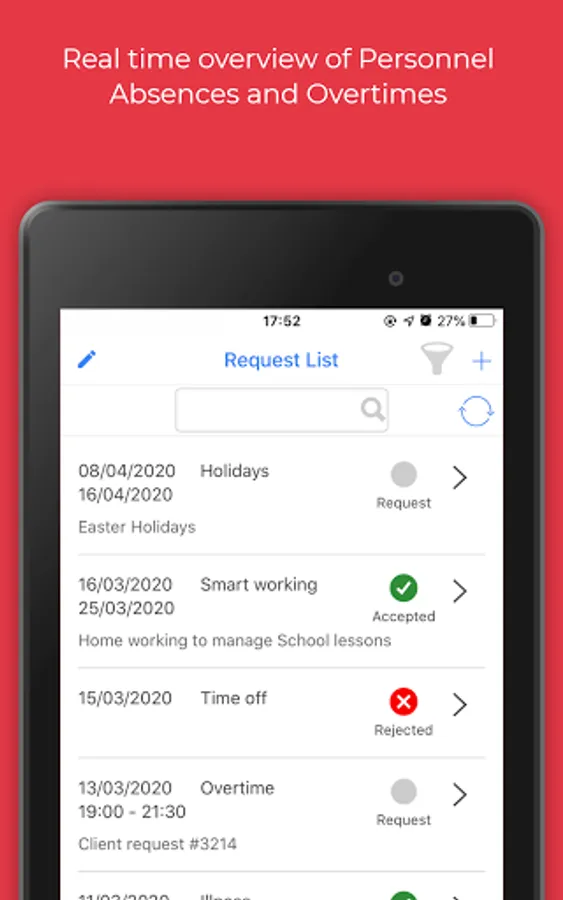 Attendance management system designed specially for managers to monitor presence tracking of employees. It is a real innovation that replaces outdated time and attendance recording systems and is easily installed on tablet, Smartlet, phablet or smartphone in order to have an overall control of team presence/absence.