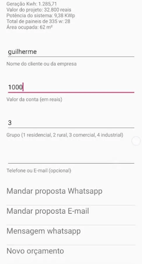 Application used to make proposals for photovoltaic systems, for the company Ecosis Energia.