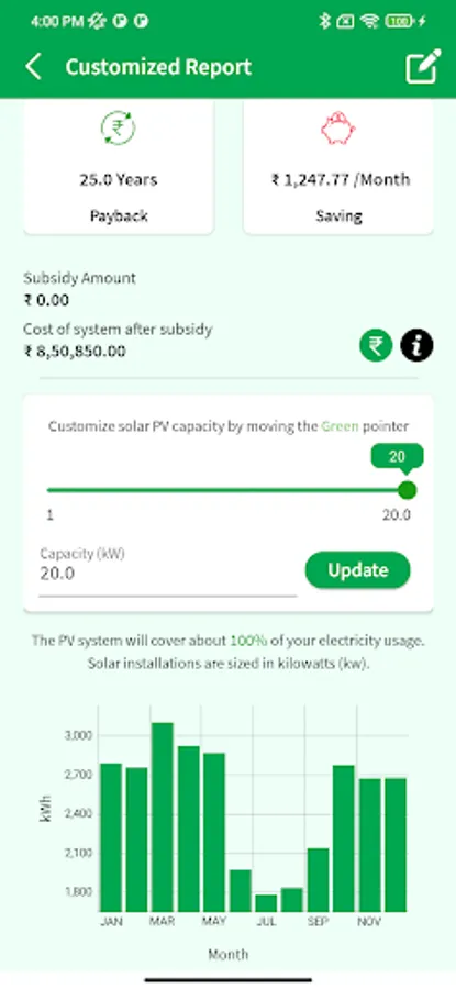 1. Create Solar PV (SPV) Design (Map based UI to calculate the size of the SPV system that can be installed)